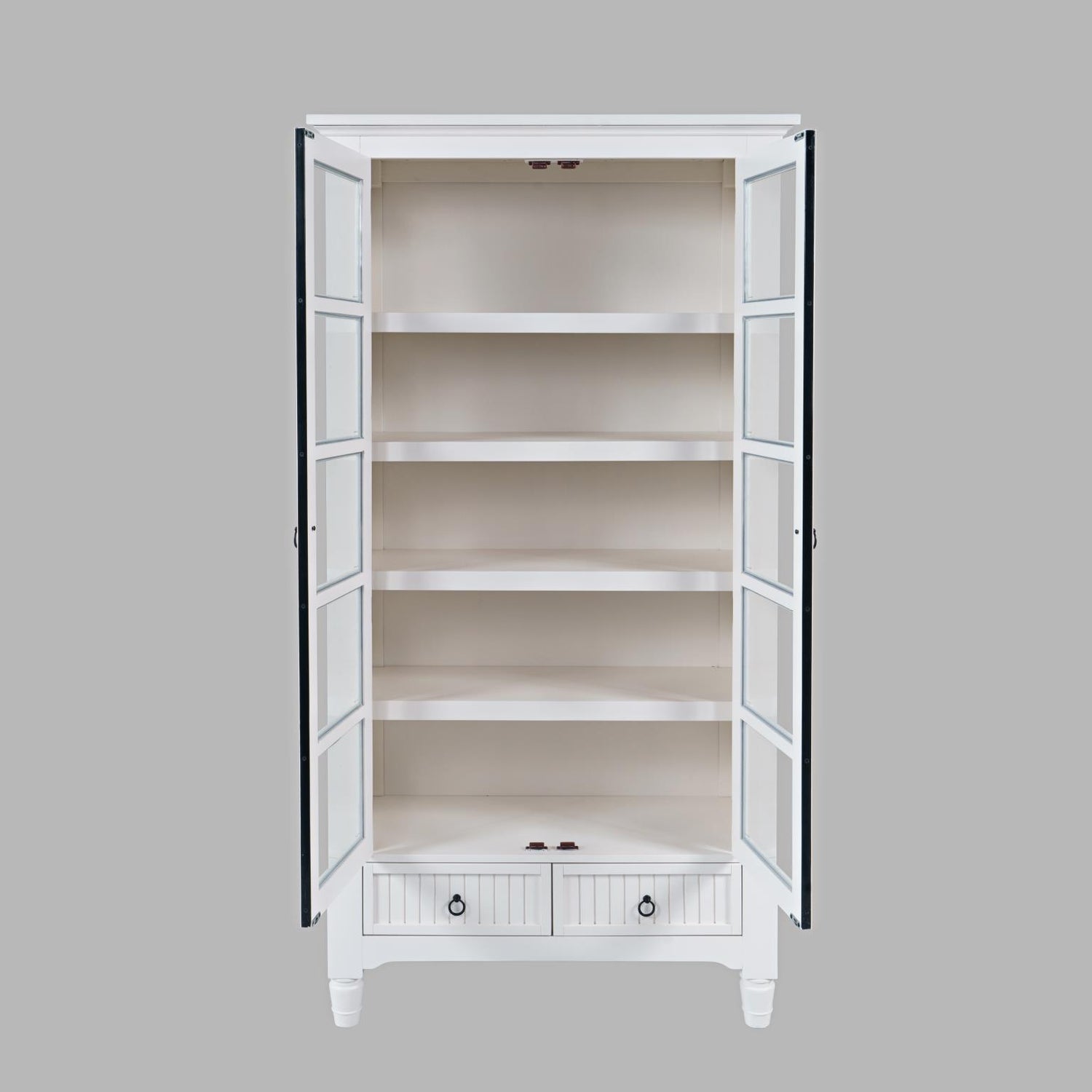 With a bright finish and timeless silhouette, the Westport Tall Display Cabinet turns storage into a statement. Glass-front doors frame your favorite pieces, while paneled drawer fronts and turned legs add a touch of coastal charm. Whether styled with books, dinnerware, or collectibles, this cabinet brings refined character to any space.