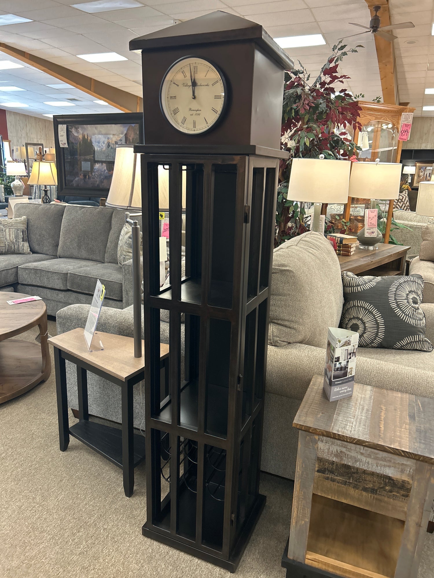 Part of The Glory Days collection, this exquisite Watchtower Cabinet showcases a working clock with Roman numerals and elegant cursive script. It offers two shelves for wine bottle storage, along with dedicated spaces for wine stemware.