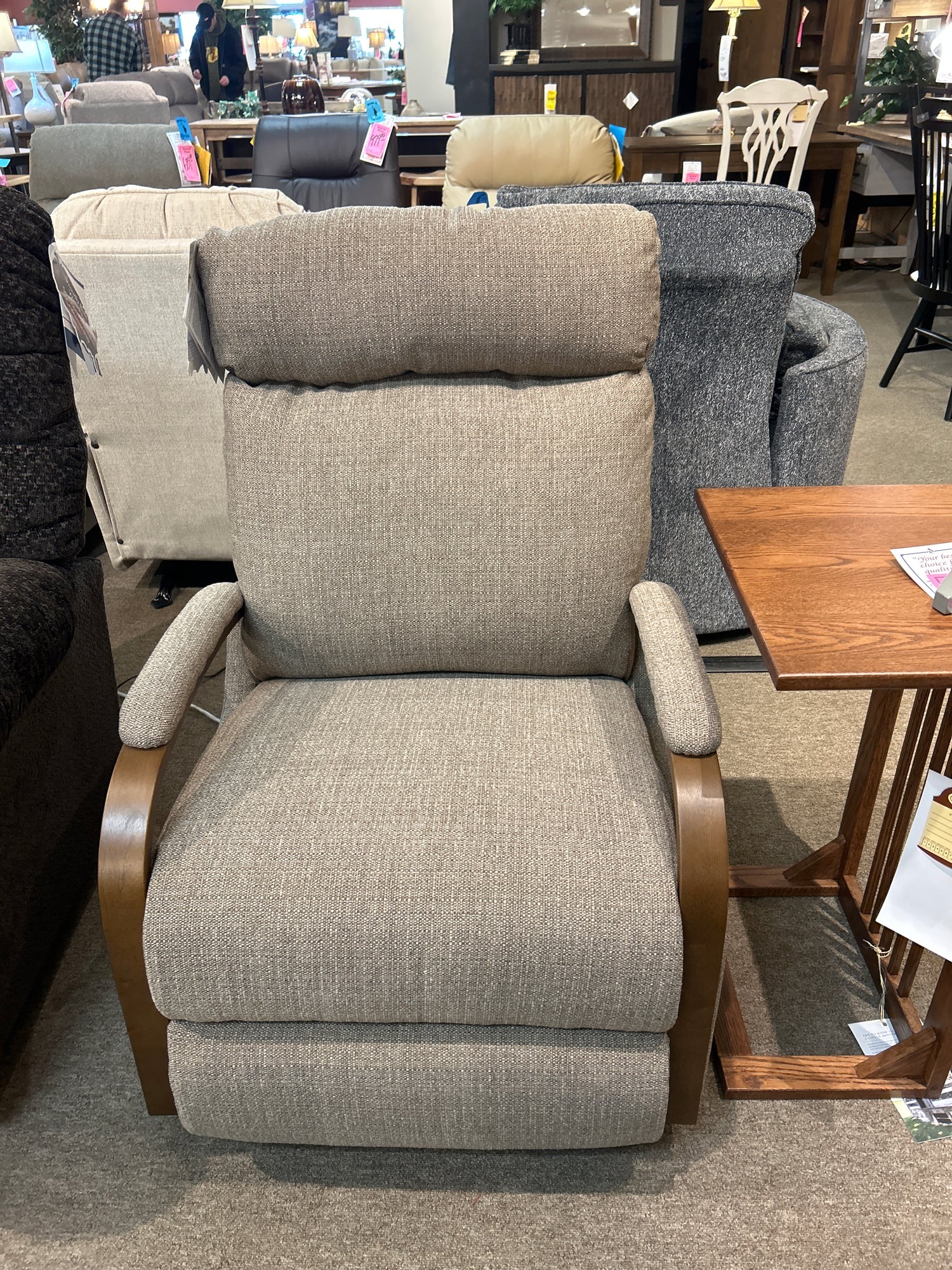 Like a breath of fresh air, the padded slim wood arm design - available in Dark Walnut, Espresso, and Honey Birch finishes - offers a modern design to traditional relaxation. The power touch buttons and micro-chaise lounge provides a sleek design, while the extra pillow cushioning fibers and assortment of base options allow for customized comfort. Also available as a manual recliner featuring an easy to use handle upholstered in fabric.