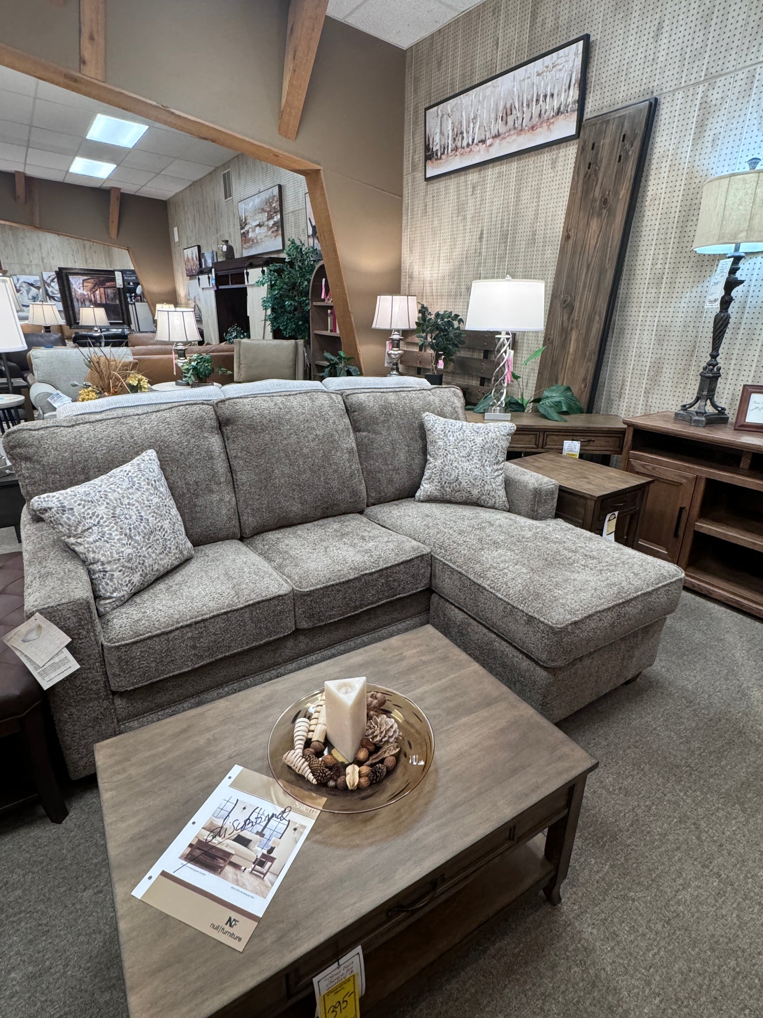 8579 Sofa lounger W/ Float Ottoman - Roam Pumice & Crafted Cappuccino / Future Cell "softer" .