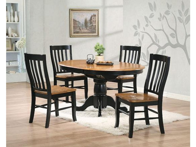 Quail's Run Almond/Ebony 57" Ped Table with 15" Butterfly Leaf .