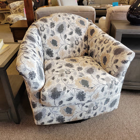 Effortlessly glide in this contemporary barrel chair. Available as a swivel chair or swivel glider, this unit has a reversible seat cushion and a slightly rounded arm with a smooth, pulled over back. The back is also slightly taller than most barrel chairs.