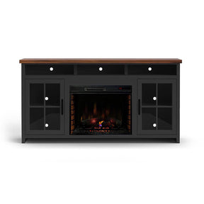 The Essex 74" Fireplace TV Stand combines coastal cottage charm with a modern farmhouse flair, ideal for refreshing your living space. It supports TVs up to 85" and offers ample storage for all your media essentials. Finished in an eye-catching Black and Whiskey, this stand includes a 28" fireplace insert that heats up to 400 square feet, featuring traditional log set options.