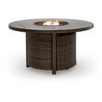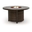 Looking for that special spot to relax and entertain on your deck or patio? Then you'll love this outdoor fire pit table. With beautifully textured resin wicker over a sturdy aluminum frame, it brings so much style and warmth to your outdoor space. The hand-brushed, wood-look finish means you can spend less time worrying and more time chilling. And a stainless steel burner with glass beads adds a captivating element that's sure to wow. What a smart and stylish way to create a beautiful, lasting space for everyone to enjoy.