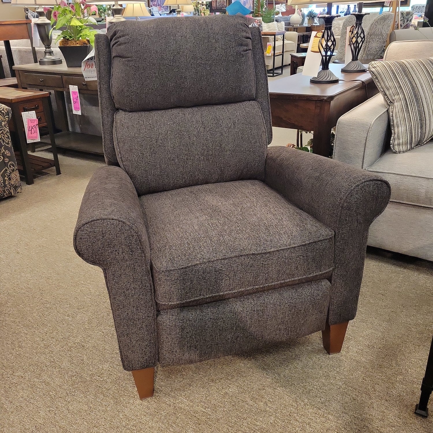 MOTION CHAIR The ultimate basic, the Kenzie chair features a high back perfect for relaxing after a long day. With its pub back, tailored rolled arm and tapered wood leg, it is a perfect accent to any home. This casual press back recliner is also available with a power option. Take a look at Maddox for the all leather version!