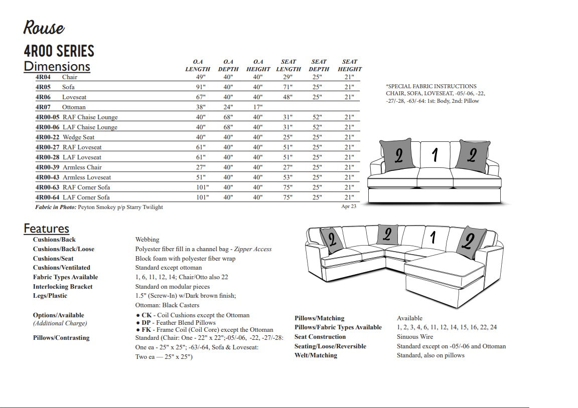 You'll love getting lost in the great depths of our Rouse collection. This generously scaled silhouette features a welted track arm, unattached back, and oversized throw pillows. Make it a true statement of your style when you select from our array of vast fabric options. This casual style offers unbelievable plush comfort, so go ahead and relax for a while! Available as a sofa, loveseat, chair, ottoman, and countless sectional configurations.