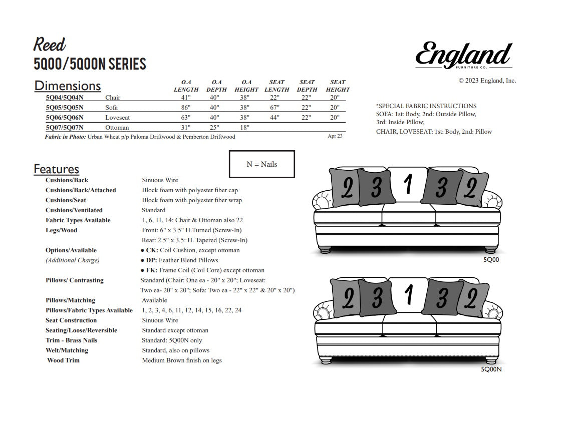 Satisfy your classic taste with our charming Reed collection. With its tight scroll back, rolled arm, turned bun leg, and banded front rail, you've got the makings of a living room masterpiece. Add an optional antique brass nailhead trim for added flair. The Reed collection features a sofa, loveseat, chair, and ottoman.